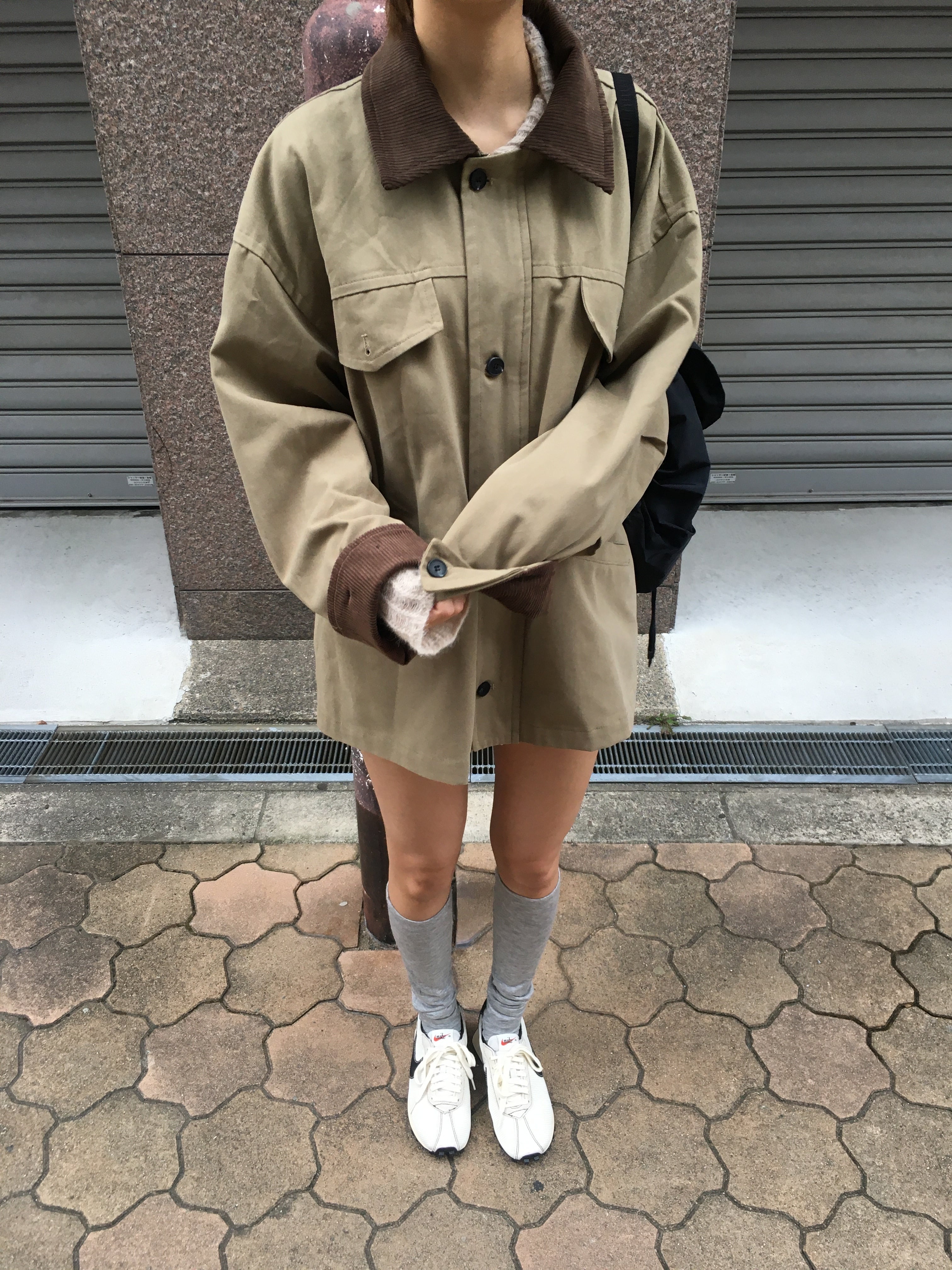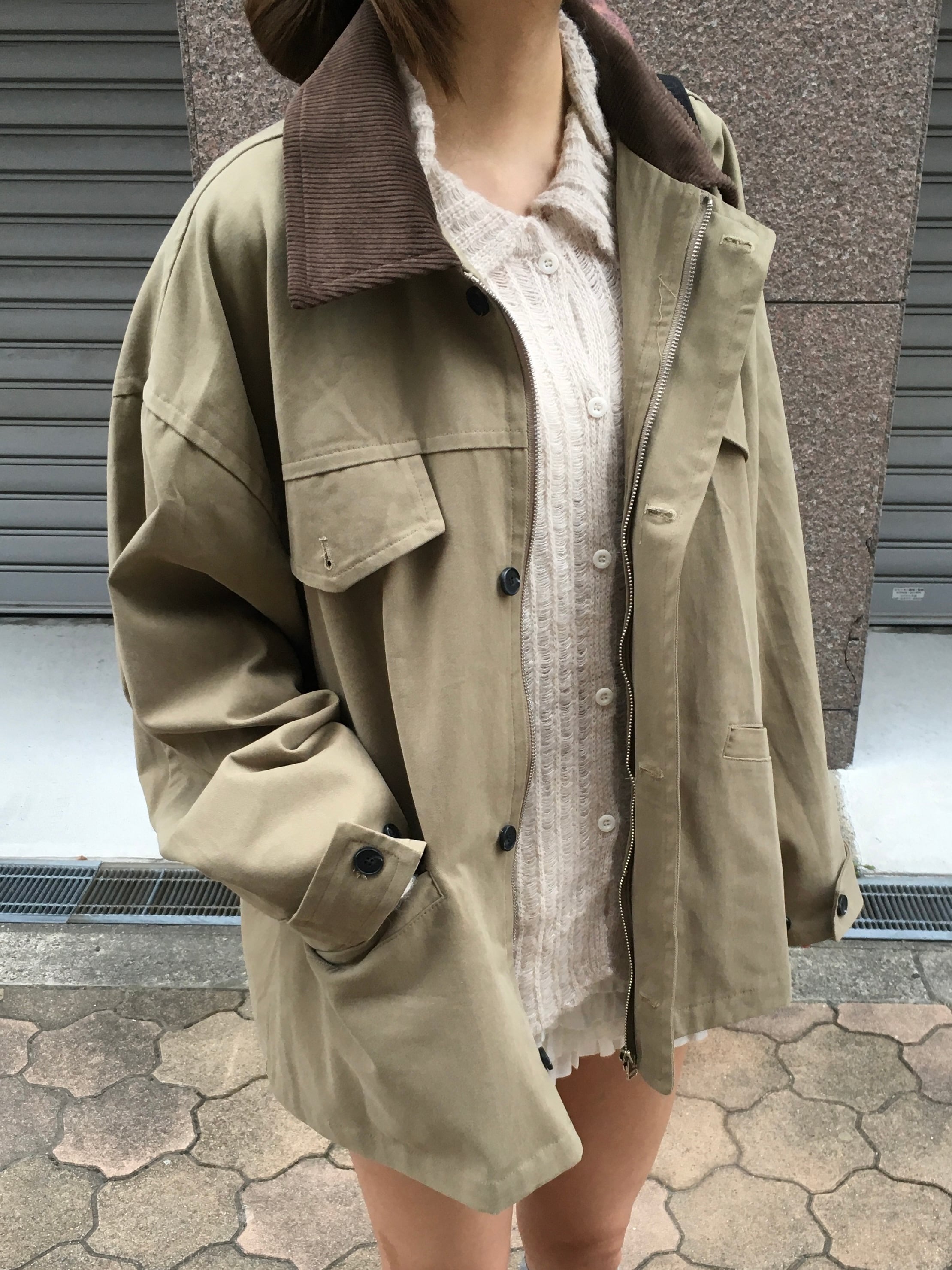 襟と袖口のコーデュロイ素材が可愛いジャケット。